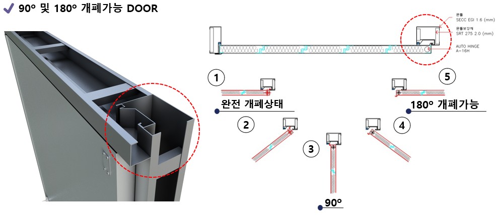 90º 및 180º 개폐 가능한 매립형 방화문
